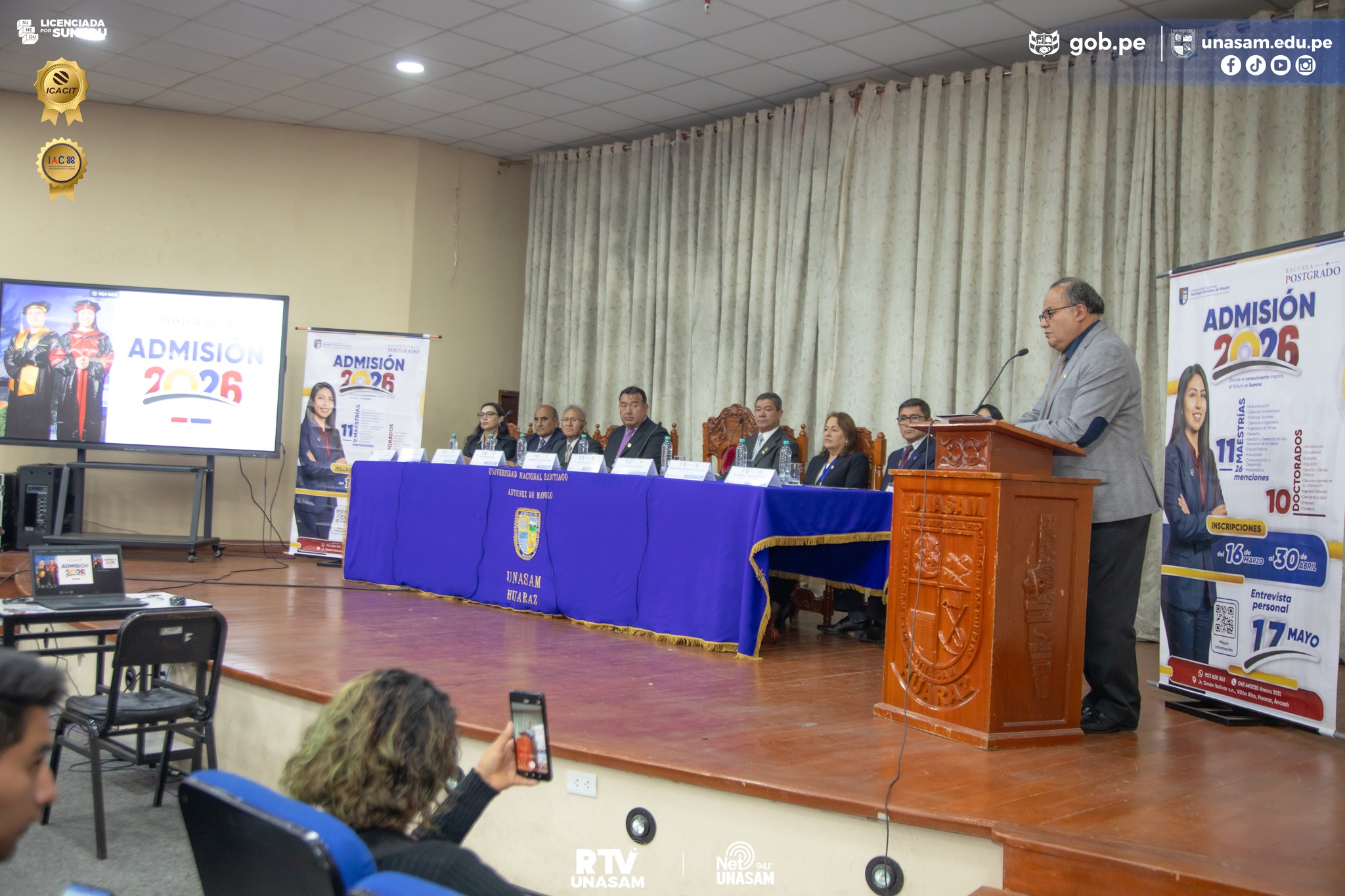 La Universidad Nacional Santiago Antúnez de Mayolo (Unasam) lanzó el Proceso de Admisión 2026 para la Escuela de Postgrado, con una oferta de 11 programas de maestría, que comprende 26 menciones, y 10 programas de doctorado. Esta información se dio a conocer durante una conferencia de prensa desarrollada esta mañana en el auditorio César Carranza Saravia del Centro de Telemática.