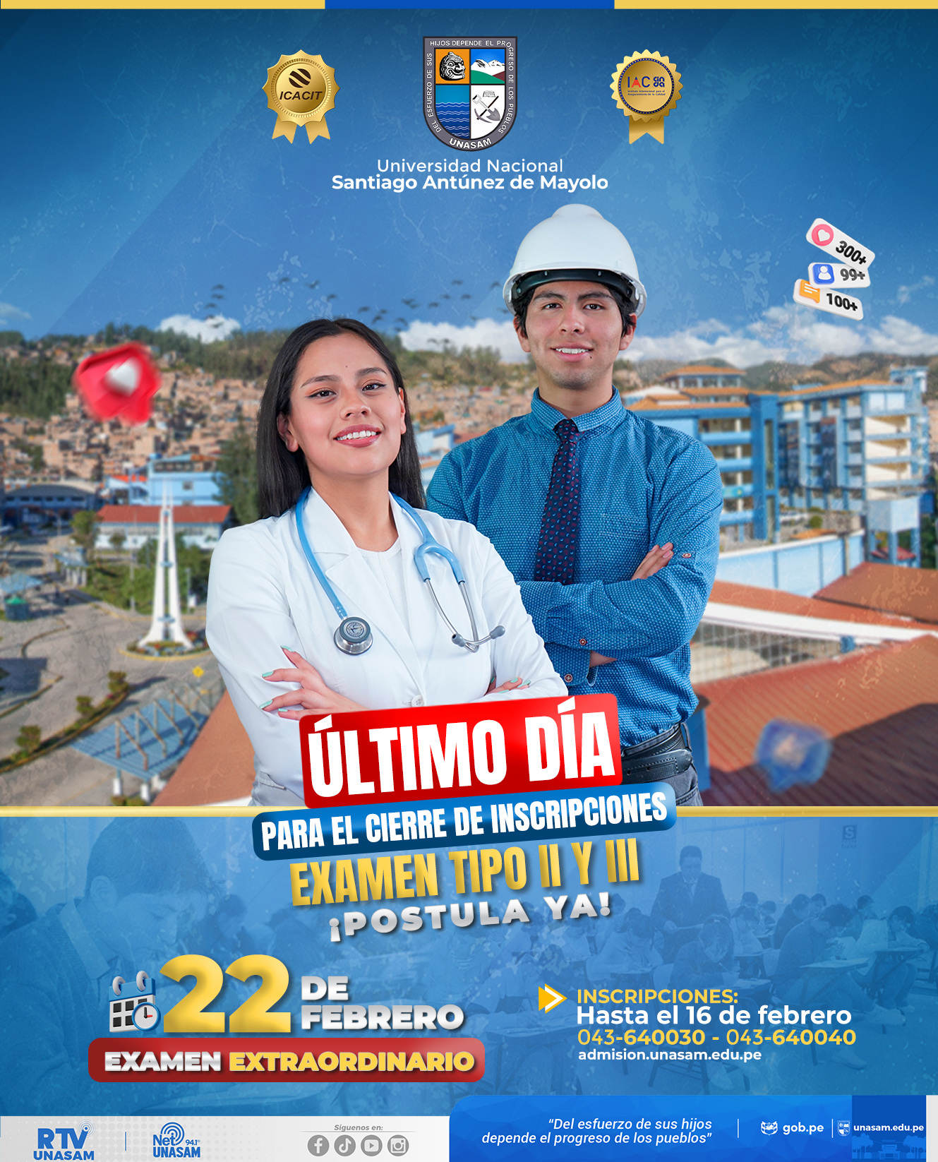 Atención postulante, hoy finalizan las inscripciones al Examen de Admisión Tipo II y III.
