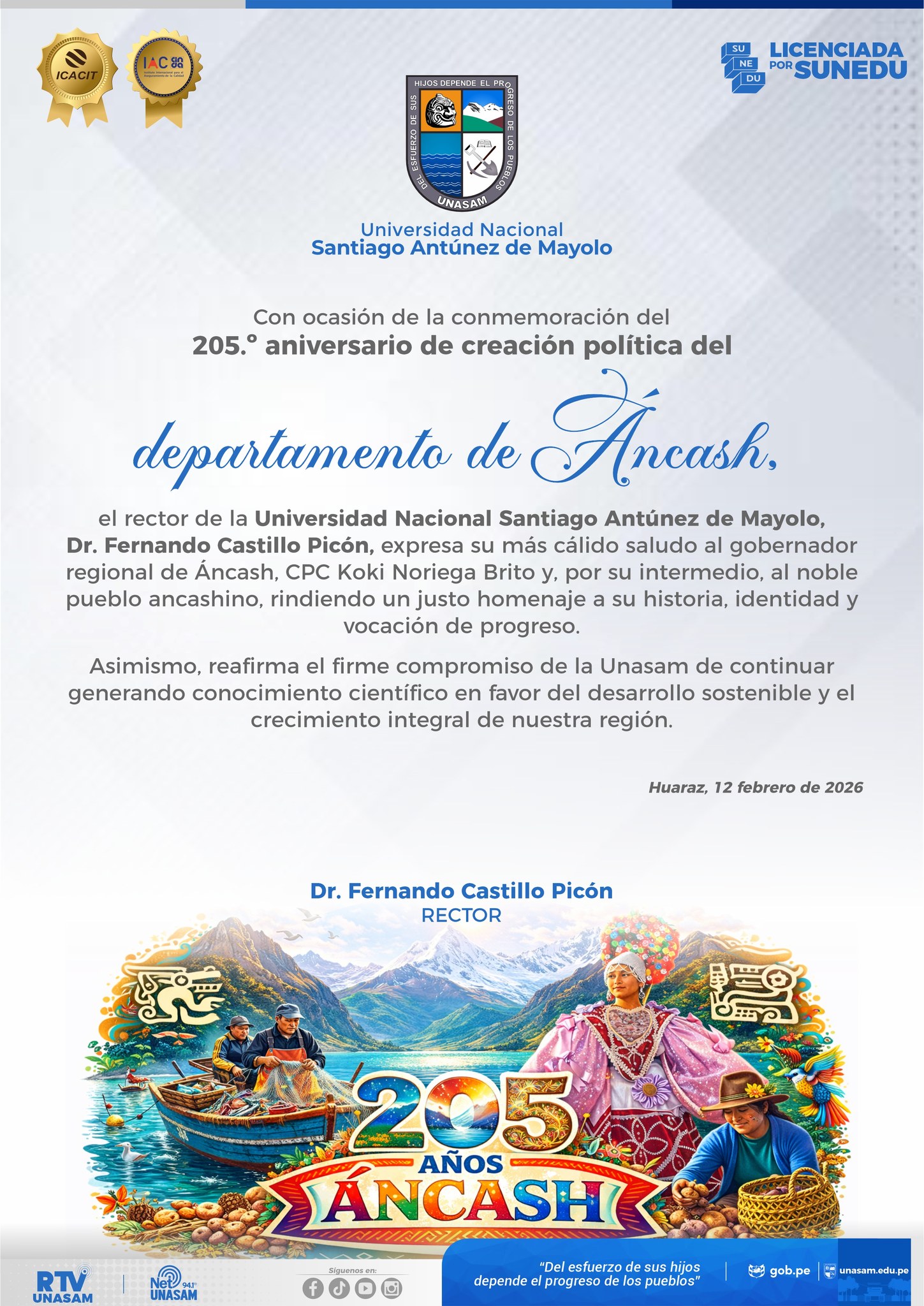 Unasam participó en la ceremonia por el 163° aniversario de la CSJAN